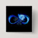 Luminous infinity symbol with glowing, beautiful, lushly blooming rose made of blue flames on black background.