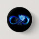 Luminous infinity symbol with glowing, beautiful, lushly blooming rose made of blue flames on black background.
