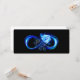 Luminous infinity symbol with glowing, beautiful, lushly blooming rose made of blue flames on black background.