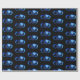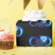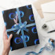 Luminous infinity symbol with glowing, beautiful, lushly blooming rose made of blue flames on black background.
