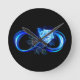 Luminous infinity symbol with glowing, beautiful, lushly blooming rose made of blue flames on black background.