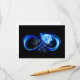 Luminous infinity symbol with glowing, beautiful, lushly blooming rose made of blue flames on black background.