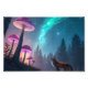 Step into a dreamlike fantasy world where glowing bioluminescent mushrooms light up a mystical forest beneath a star-filled sky. This enchanting artwork features a curious fox surrounded by ethereal colors, cosmic nebula vibes, and magical night energy. Perfect for fantasy lovers, nature dreamers, and fans of surreal woodland aesthetics inspired by imagination, wonder, and cosmic beauty.