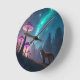Glowing Mushroom Forest Fox Fantasy Art Rund Klocka
