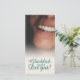 Kompliment Karte mit lachendem Frauengesicht und handschriftlichen Grüßen auf der Vorderseite der Karte. Restliche Flächen stehen zur freien Verfügung.