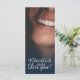 Kompliment Karte mit lachendem Frauengesicht und handschriftlichen Grüßen auf der Vorderseite der Karte. Restliche Flächen stehen zur freien Verfügung.