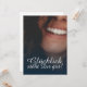Kompliment Karte mit lachendem Frauengesicht und handschriftlichen Grüßen auf der Vorderseite der Karte. Restliche Flächen stehen zur freien Verfügung.