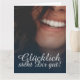 Kompliment Karte mit lachendem Frauengesicht und handschriftlichen Grüßen auf der Vorderseite der Karte. Restliche Flächen stehen zur freien Verfügung.