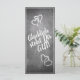 Kompliment Karte mit handschriftlichen Grüßen im Kreidetafelfortfarande auf der Vorderseite der Karte. Restliche Flächen stehen zur freien Verfügung.