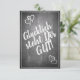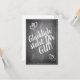 Kompliment Karte mit handschriftlichen Grüßen im Kreidetafelfortfarande auf der Vorderseite der Karte. Restliche Flächen stehen zur freien Verfügung.