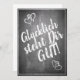 Kompliment Karte mit handschriftlichen Grüßen im Kreidetafelfortfarande auf der Vorderseite der Karte. Restliche Flächen stehen zur freien Verfügung.