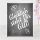 Kompliment Karte mit handschriftlichen Grüßen im Kreidetafelfortfarande auf der Vorderseite der Karte. Restliche Flächen stehen zur freien Verfügung.