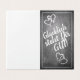 Kompliment Karte mit handschriftlichen Grüßen im Kreidetafelfortfarande auf der Vorderseite der Karte. Restliche Flächen stehen zur freien Verfügung.