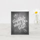 Kompliment Karte mit handschriftlichen Grüßen im Kreidetafelfortfarande auf der Vorderseite der Karte. Restliche Flächen stehen zur freien Verfügung.