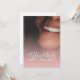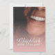Kompliment Karte mit lachendem Frauengesicht und handschriftlichen Grüßen auf der Vorderseite der Karte. Restliche Flächen stehen zur freien Verfügung.