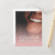 Kompliment Karte mit lachendem Frauengesicht und handschriftlichen Grüßen auf der Vorderseite der Karte. Restliche Flächen stehen zur freien Verfügung.