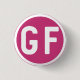 Äta gluten fritt? Låt världen veta med detta litet klämmer fast eller knäppas. Den presenterar en GF cirklar stillogotypen i vit mot en magentafärgad rosa bakgrund.