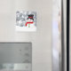 Luta lite snögubbe som lyssnar i solsken. Red Scarf, svart top hat och grönt.