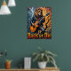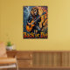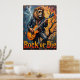 Den här övertygande teckningen visar en lejon, tittar coola i solglasögon och läder jacka, som på ett mästerligt sätt stryper en elektrisk gitarr medan den sitter på det vridda grenarna av ett obart träd. Ett texturerat, moody himmel ger bakgrunden. Det tjocka, uttryckliga impastomet skapar ett konkret struktur, skapar "Sten eller Die"-förklaringen som motsvarar prestandans råenergi i en naken miljö.