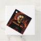 En häxa som håller en pumpkin. Flamor i bakgrunden. Orange och svart färg. Du kan anpassa den märkliga Gift-texten.