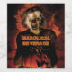 En häxa som håller en pumpkin. Flamor i bakgrunden. Orange och svart färg. Diabolical Beverage-text kan anpassas av dig.