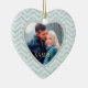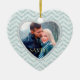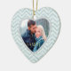 Här är en sparsam Helgdag som innehåller ditt eget foto i hjärtformade ram. Ram placeras på en isig akvafblått schevron. Baksidan av dekorationen har samma bakgrund och ram, med anpassningsbarna vit på en passande solid bakgrund. Bright, elegant och personlig åt dig! *Observera att bilden är utskriven och inte innehåller något egentligt glitter.