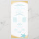 Gnistra för snäcka av Aqua-stjärnor och Guld- Beach-bröllopsprogram för att komplimentera bröllopsinbjudan till stranden. Anpassa och lägg till linjer i text och färg efter behov.