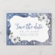 Faux gnistra silver och blå glitter ram och "spara datumet" med dammig blå och vit blommigt, elegant och snyggt. Underbart spara datumkortet för moderna bröllop, romantiska bröllop och botaniska trädgårdsbröllop. Visa alla matchande delar i samlingen.