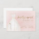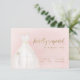 OSA kort i elegant har vattenfärgsvit bröllop-klänning med gnistra faux guld glitter om rosa bakgrund.