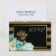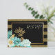 Denna elegant OSA kort kombinerar modern och chicen med den traditionella bröllop-blommigten. Den har en enastående bild av blommor i mynta och vita färgader med guld som förskönande vid grund. Bilden läggs över ett glansigt guld ram. Din anpassningsbar är i ljus guld vid högerna. Allt placeras på en dramatisk svart och faux glitter guld rand. Kortets baksida är helt vit för att göra det lätt för din svarande att märka. Elegant, trendig och lämpligt för bröllop under alla årstider! * Observera att bakgrunden är tryckt på kortet och inte innehåller något egentligt glitter.