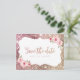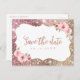 Faux gnistra ro glitter guld ram och "spara datumet"-skriptet med blommigt, elegant och snyggt för rosa. Underbart spara vykortet för modernt bröllop, romantiskt bröllop och botaniskt trädgårdsbröllop. Visa alla matchande delar i samlingen