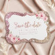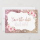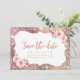 Faux gnistra ro glitter guld ram och "spara datumet"-skriptet med blommigt, elegant och snyggt för rosa. Underbart spara datumkortet för moderna bröllop, romantiska bröllop och botaniska trädgårdsbröllop. Visa alla matchande delar i samlingen.