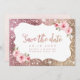 Faux gnistra ro glitter guld ram och "spara datumet"-skriptet med blommigt, elegant och snyggt för rosa. Underbart spara datumkortet för moderna bröllop, romantiska bröllop och botaniska trädgårdsbröllop. Visa alla matchande delar i samlingen.