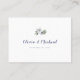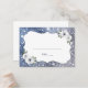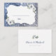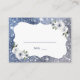 Faux gnistra silver och blå glitter ram med dammig blå och vit blommigt och pars namn på rygg, elegant och snyggt. Underbara bröllop-platskort för modernt bröllop, romantiskt bröllop och botaniskt trädgårdsbröllop. Visa alla matchande delar i samlingen