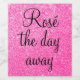 Snyggt, trendig, gigantisk "Rosé the day away"-etikett för vin med shock rosa glitter gnistra bakgrund och svart skrift.