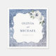 Falskt gnistrande silverblått glitterram med dammigt blått och vitt blommönster, elegant och stilfullt, fantastiska anpassade bröllopsservetter.