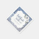 Falskt gnistrande silverblått glitter "fira med oss"-skrift med dammig blå och vit blomster, elegant och stilren, fantastiska anpassade födelsedagsservetter.