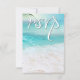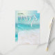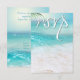 Strandbröllopstema. Vackert gnistrande klart havsvatten som glittrar i solljus, vit vatten skum på den rena sandstranden med en palmfrond och ljus rosa blomma pryder hörnet Lättsam eller formell, för ett strandbröllop eller destination öbröllop - Detta är en del av en komplett bröllopssvit med kostnadsfri bröllopspresentationsmateriel som finns på The Barefoot Bride http://zazzle.com/TheBarefootBride