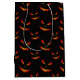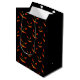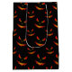 Gnistrande Jack O'Lantern-ansikte Halloween-mönster presentpåse. Halloween-presentinredning. Cool och skrämmande gnistrande Jack O'Lantern-ansikte Halloween med orange och röda gnistrande detaljer. PLdesign Otrevligt orange och gul brinnande pumpaansikte på svart. *foto av gnistrar, inte verklig glitter!
