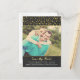 Svarta tavlan foto spara datumet vykort med falska guldgnistrande konfettiprickar. (Inte äkta glitter eller konfetti)