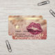 Glamourösa kreditkortstils visitkort med djärva burgunderröda läppar över en elegant gnistrande mauve bakgrund. Observera att glitter och holografiska element är simulerade.