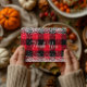Falskt glänsande silverglitter med gnistor mot ett klassiskt rött och svart Buffalo-rutmönster.