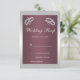 Elegant modern glänsande bröllopssvarskort med klassiska romantiska skinande bröllopsringar med diamant-hjärtan och en vacker burgunderfärgad gradient på en vacker silverbakgrund. Sofistikerad, klassisk design för din speciella dag. All text, teckensnitt och teckensnittsfärg kan anpassas helt för att möta dina krav. Om du behöver hjälp för att anpassa din produkt eller vill ha matchande produkter, vänligen kontakta mig via min butik och jag hjälper dig gärna.