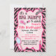 Lägg till lite glamour till din fest med denna söta spa-födelsedagsinbjudan med falska zebrarandiga rosa glitter. Innehåller zebratofflor, spegel, läppstift och nagellack. Handritad illustration av McBooboo. Inte äkta glitter, det är en illustration.