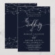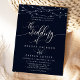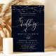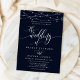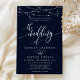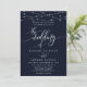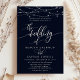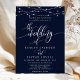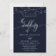 Gnistrande strängljus Elegant marinblå bröllopsinbjudan. Denna anpassade moderna bröllopsdesign kan enkelt anpassas med dina egna bröllopsdetaljer.