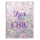 "Mycket chic" på en gnistrande fotoillustrerad bakgrund framhäver denna anteckningsbok.