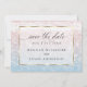 Spara datumet | Fantastiska skimrande glänsande havsvatten glänser i den nedgående solen - i bleka nyanser av dammig rosarosa och dammig blå - text visas på en genomskinlig vit gnistrande guld kantad ram som visar designen men låter texten läsas enkelt. Accenterad med vacker elegant handskriven kalligrafi. Lätt att anpassa bröllopsmall.