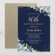 Gnistrans Blommigt Blått 80:e Födelsedagsfesten Inbjudningar