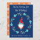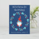 "Vi är gnom för helgdagarna." En söt, rolig, vit gnom i rött och dammigt blått tillsammans med en skandinavisk designad dammig blått, rött och orange blommigt-andedräkt på en marin blå bakgrund hjälper dig att gå in i helgdagarna jul, Hanukkah och nyår. En isblå och vit snöflinga slumpmässigt mönster på korallets orange bakifrån. Känn julhelgens värme och glädje när du skickar den här roligten, ett enkelt, modernt och personlig julklapp. Det finns också passande höljen, klistermärken, tote bags, papper förpackning, serveringsbrickor, hemmadekor och mycket annat. Skicka det här till någon speciell! Skriv bara in hälsningen, namn och vilket år du vill och du kan enkelt anpassa det här hälsningskortet. Var snäll och meddela mig med eventuella frågor eller förfrågningar.
