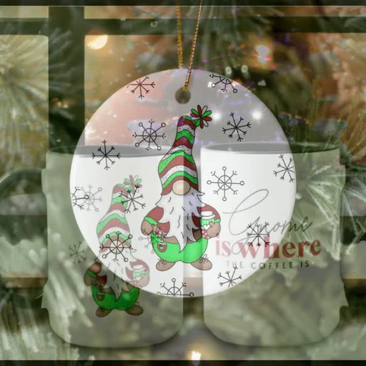 Gnome är där kaffet är söt julprydnad med en hand plockade tecknad gnome som håller kaffe kopp. Baktill citatet.